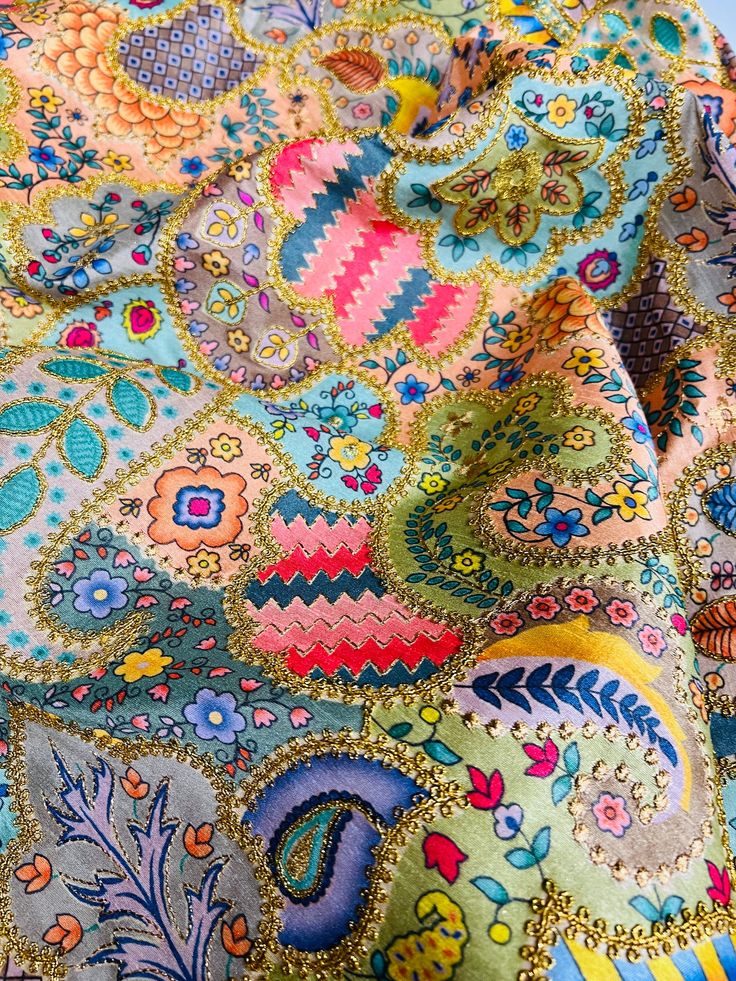 Home Apparel and Fashion Embroidered Apparel, Garments and Fabrics Kantha Embroidery Multicolor Chifli Embroidery Silk Fabric